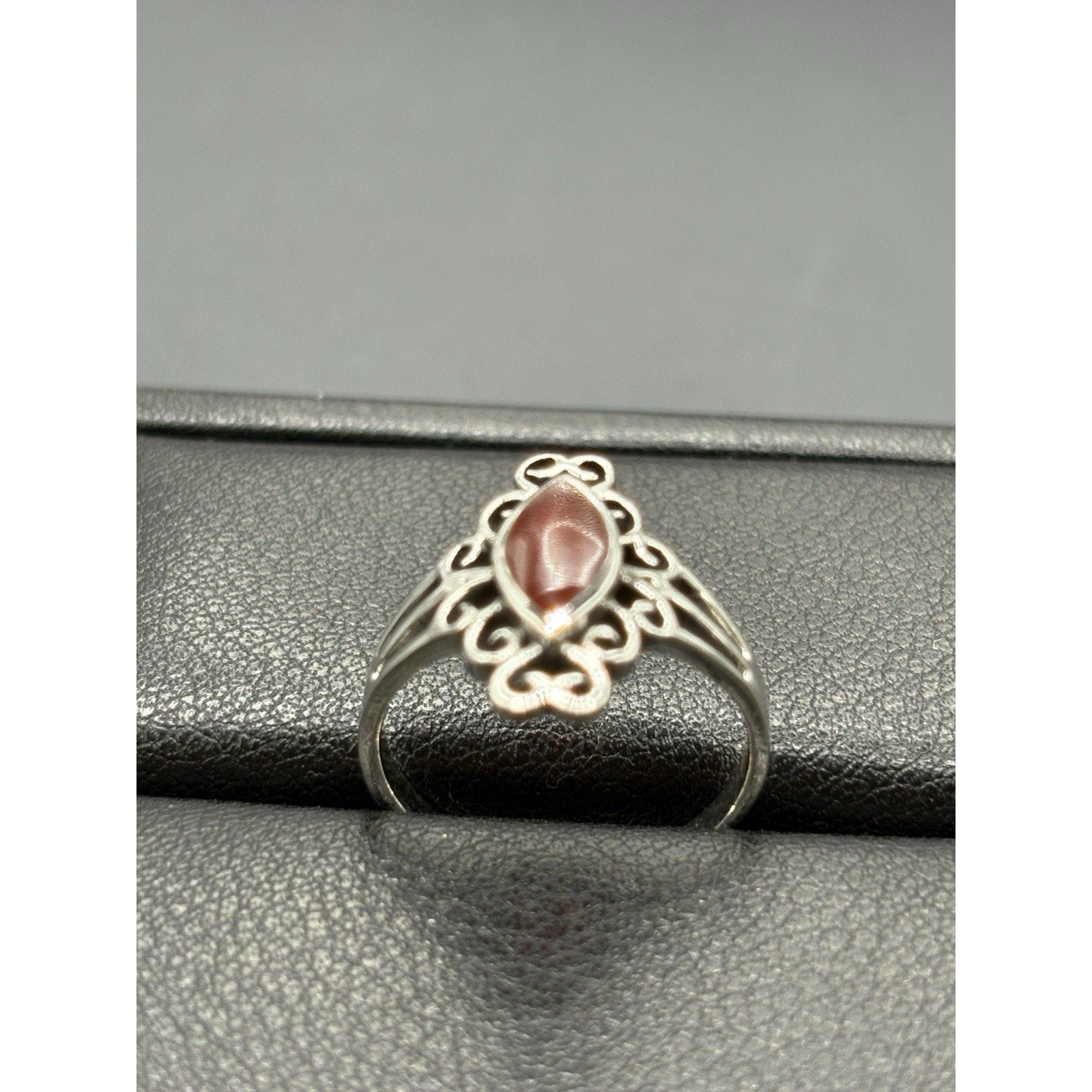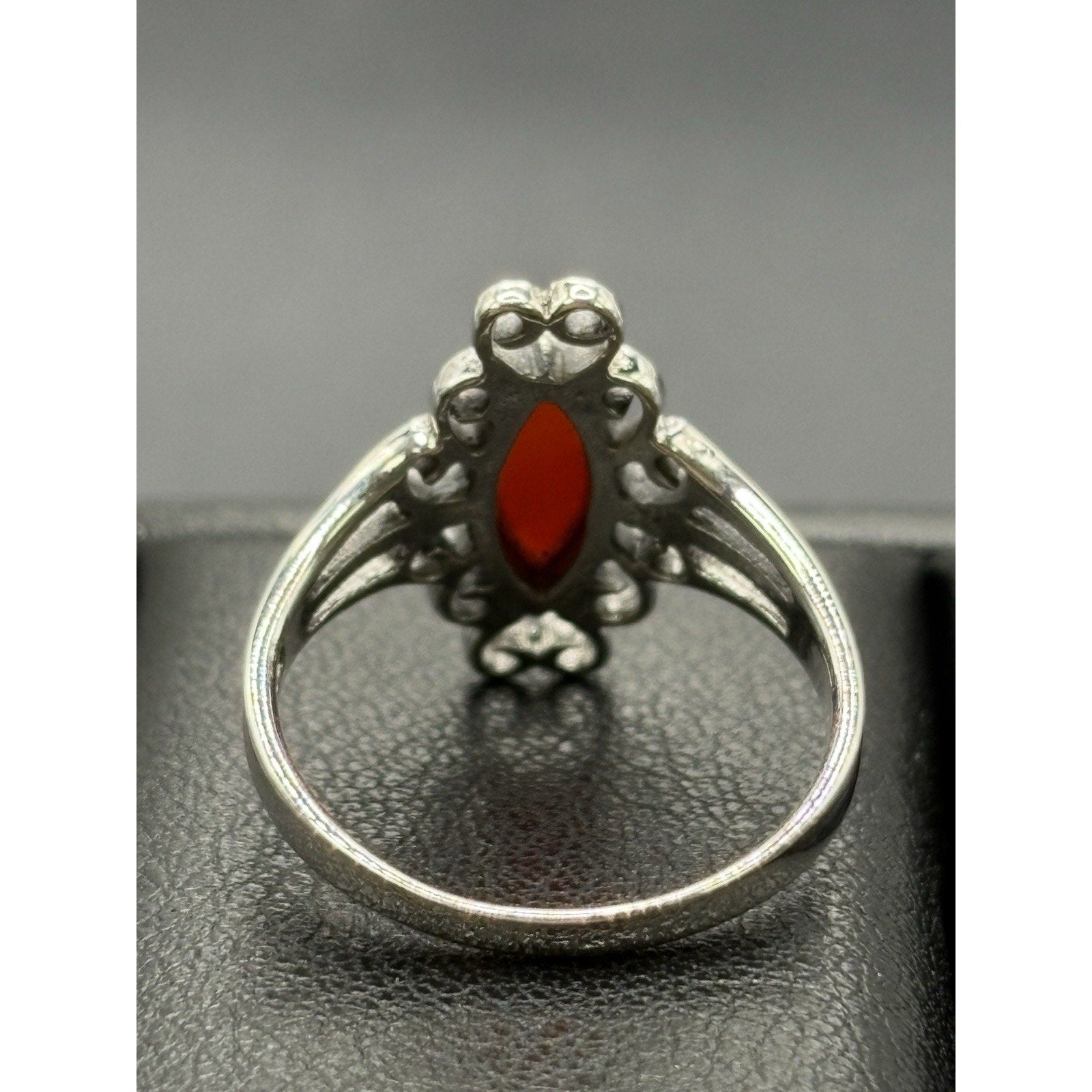 New Condition Sterling Silver Red Carnelian Scroll Ring Size 7
