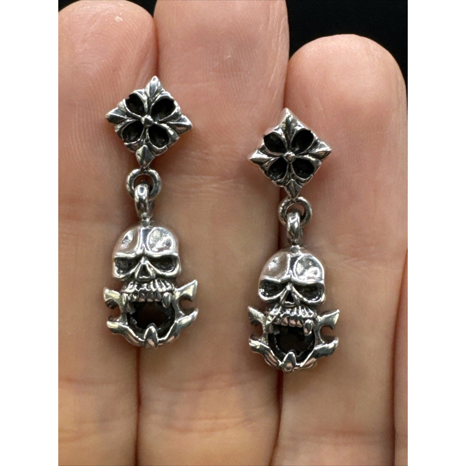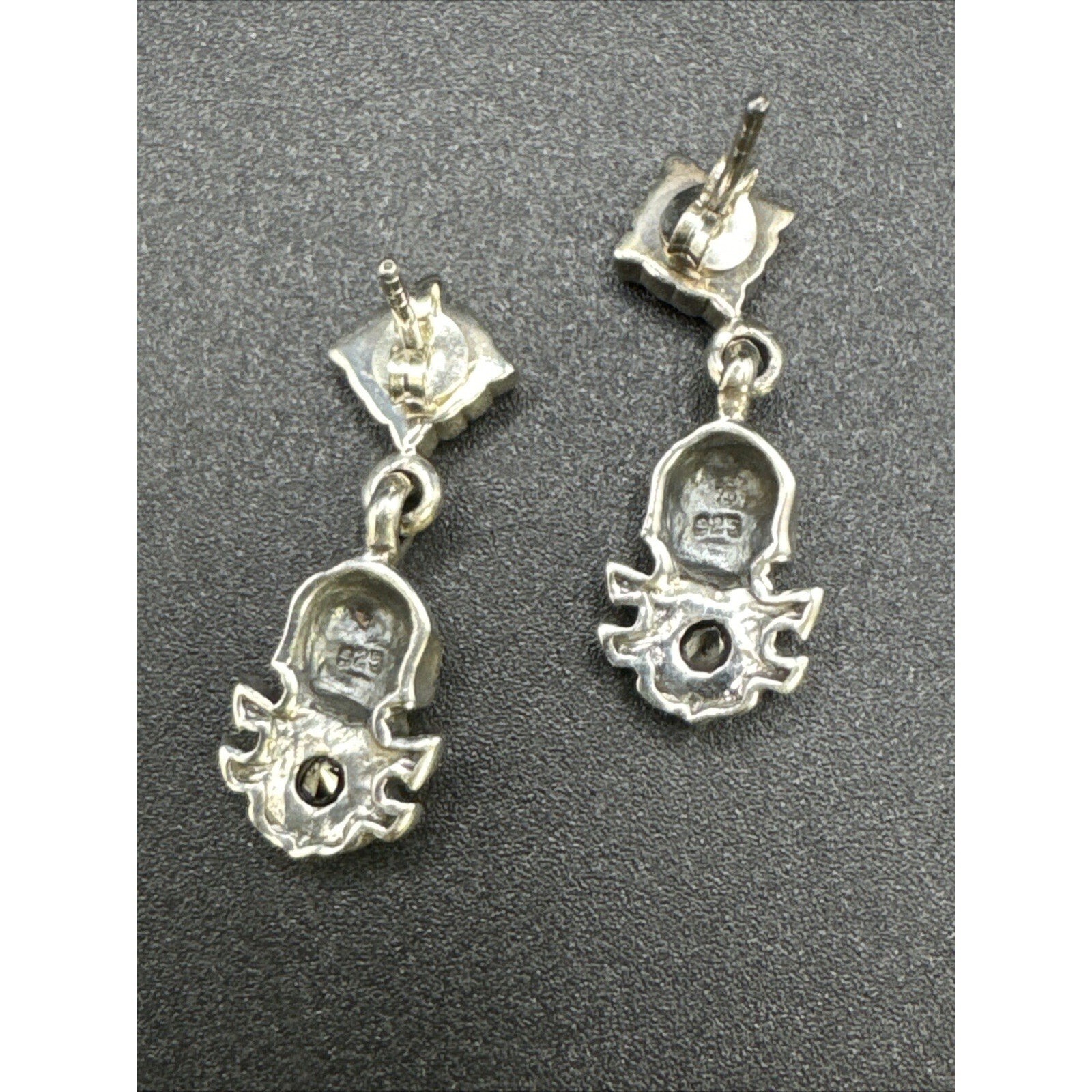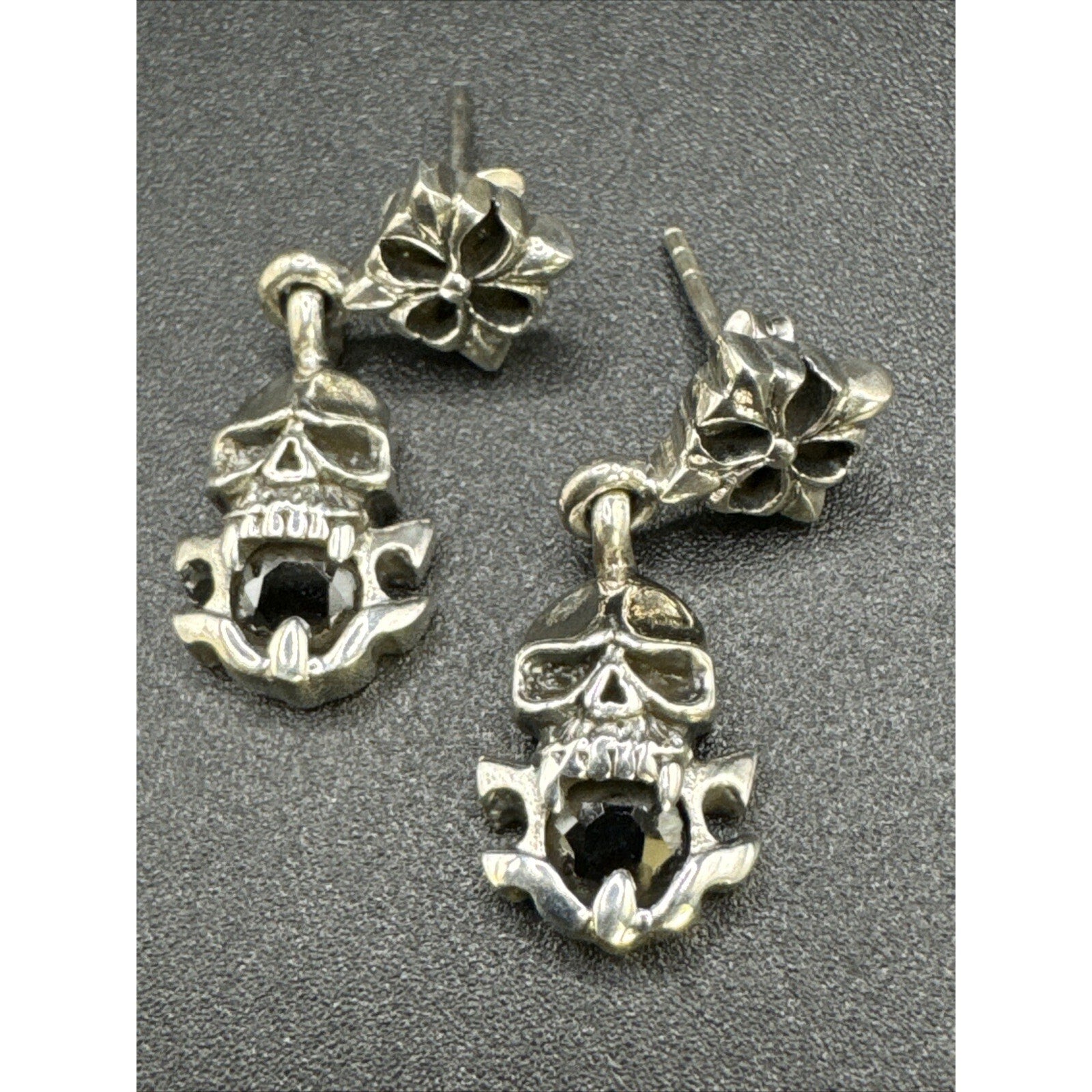 New Condition Sterling Silver Skull Earrings Black CZ Goth