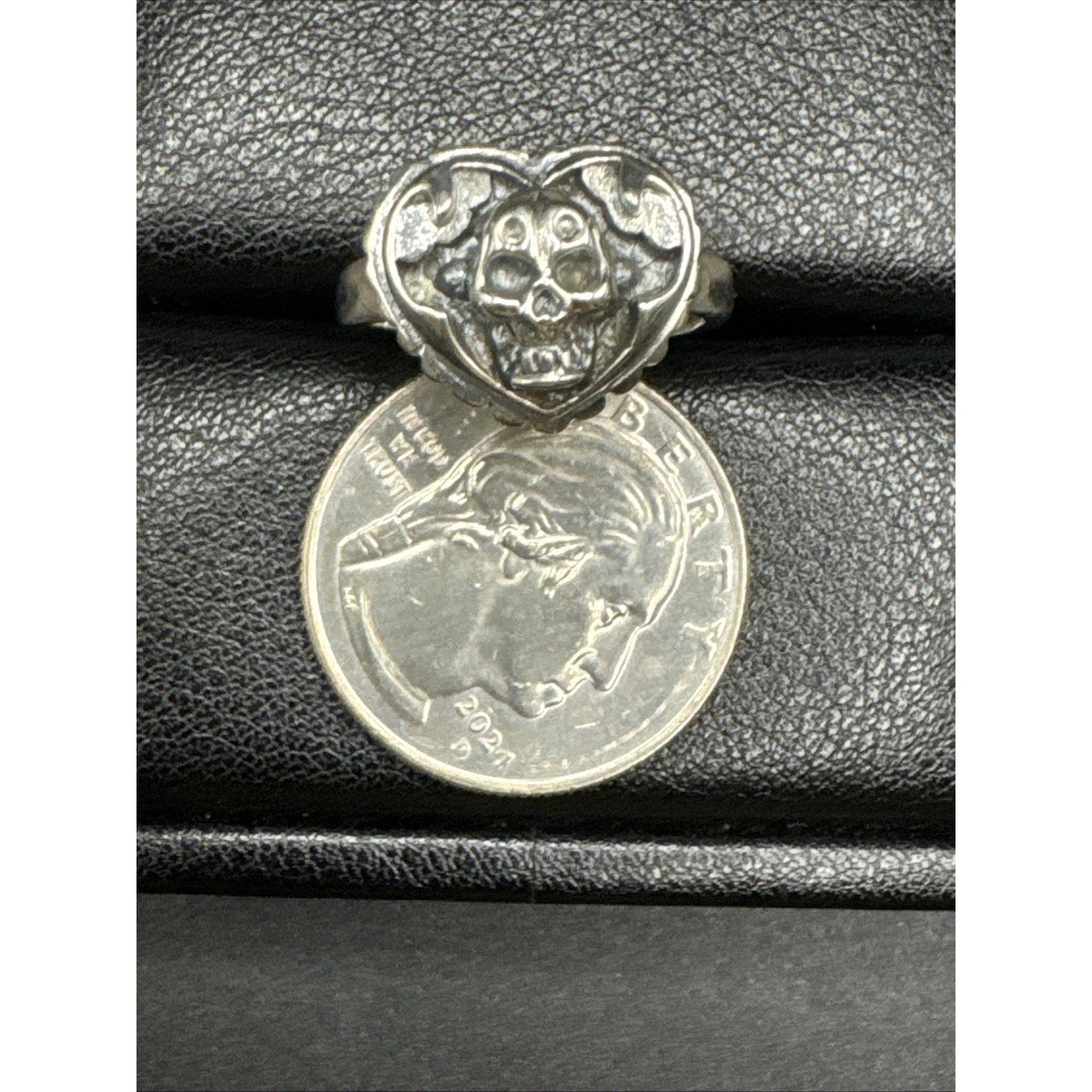 New Condition Sterling Silver Skull Heart Ring 925 Size 7