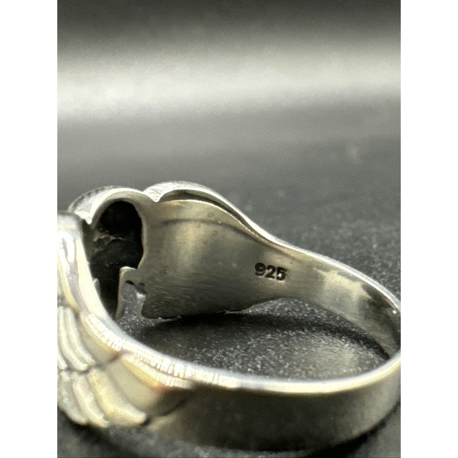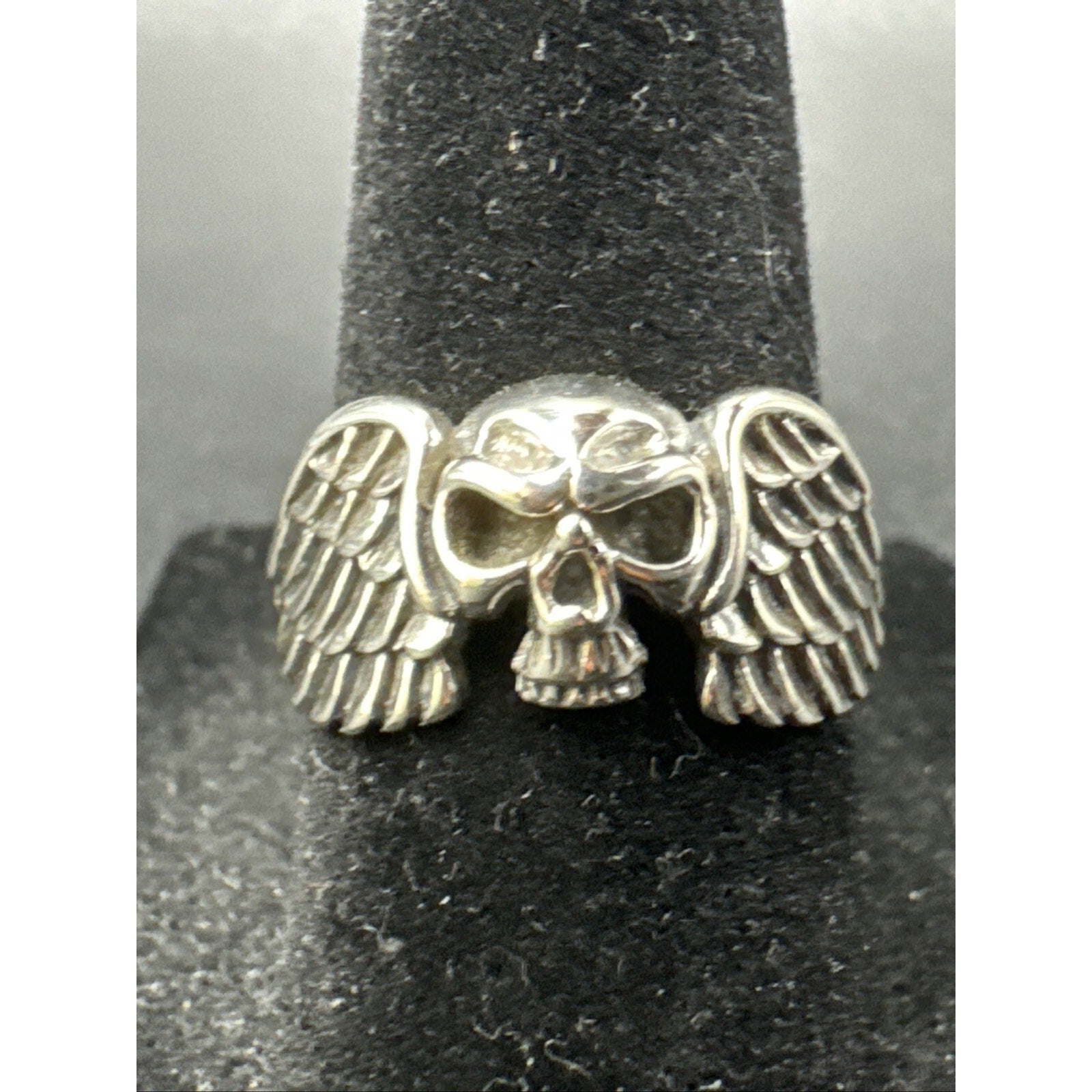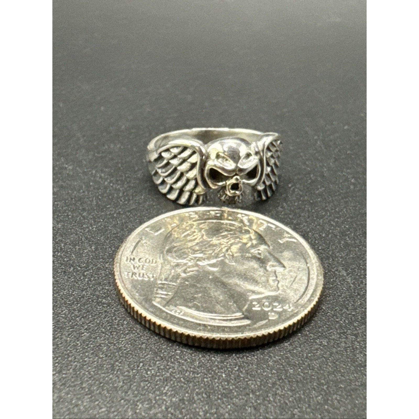 New Condition Sterling Silver Skull Wings Ring 925 Size 7