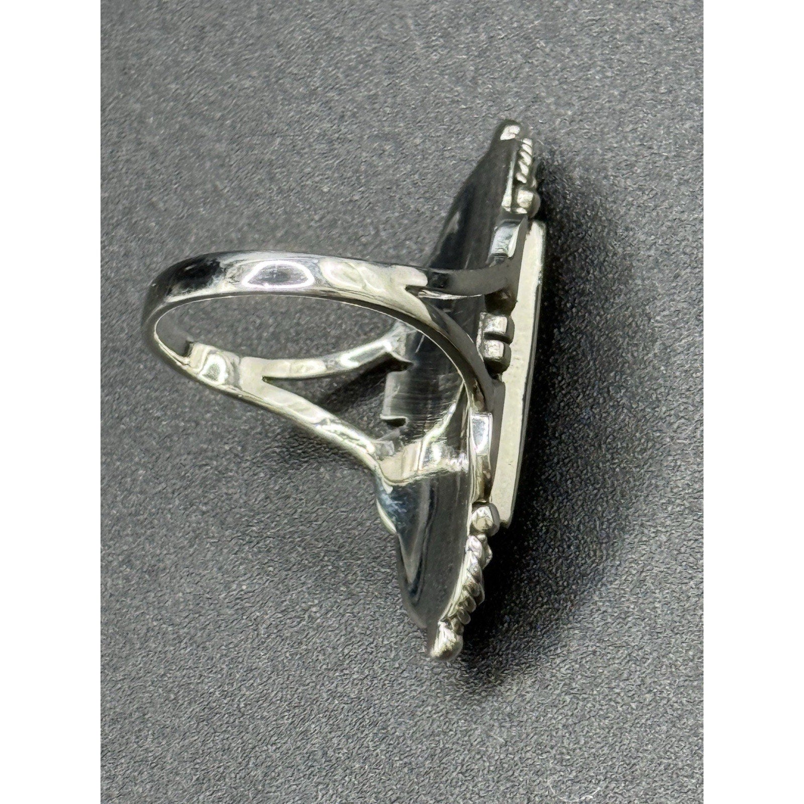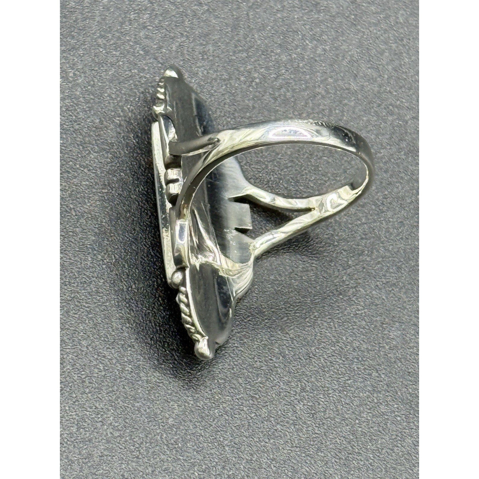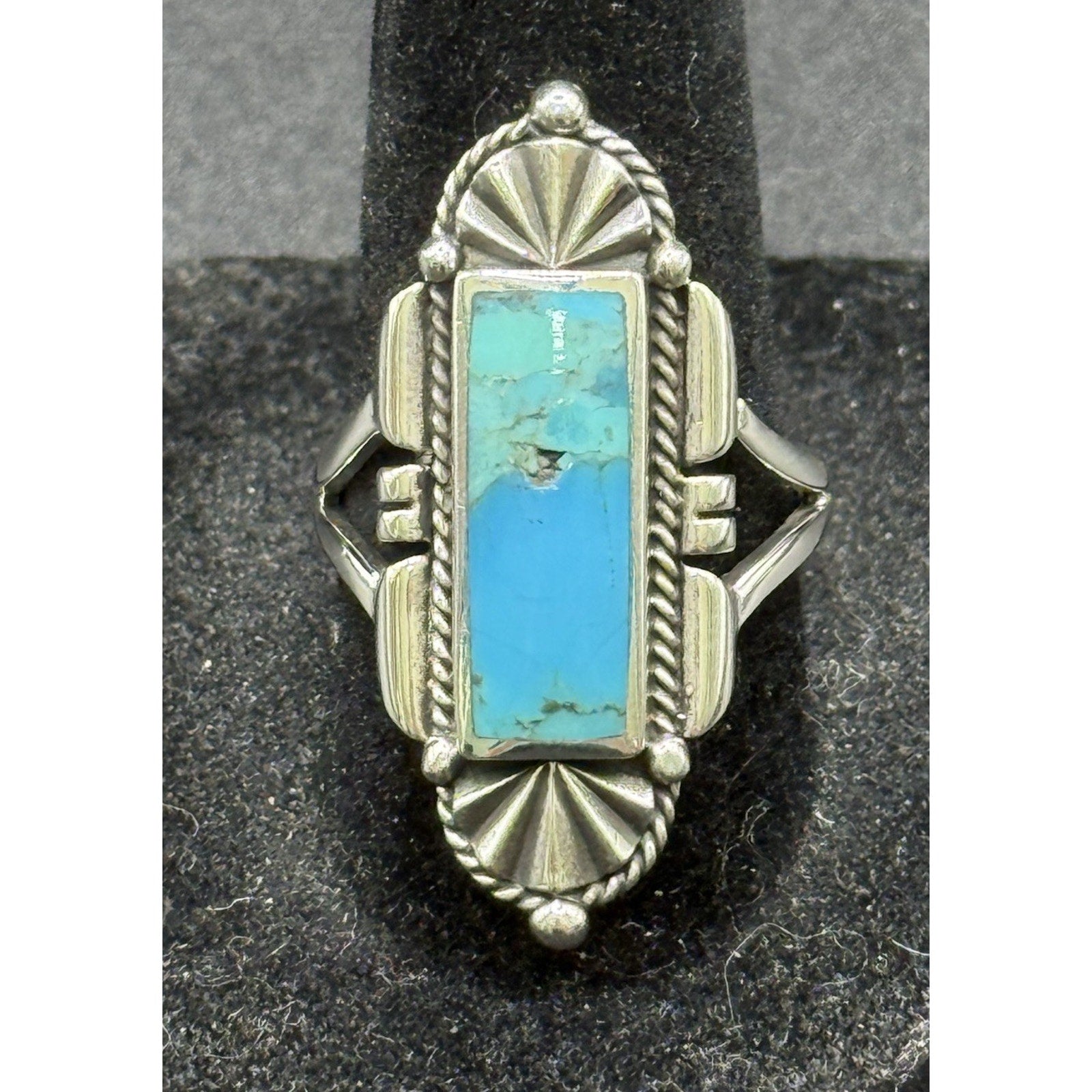 New Condition Sterling Silver Turquoise Art Deco Long Ring Size 8 925