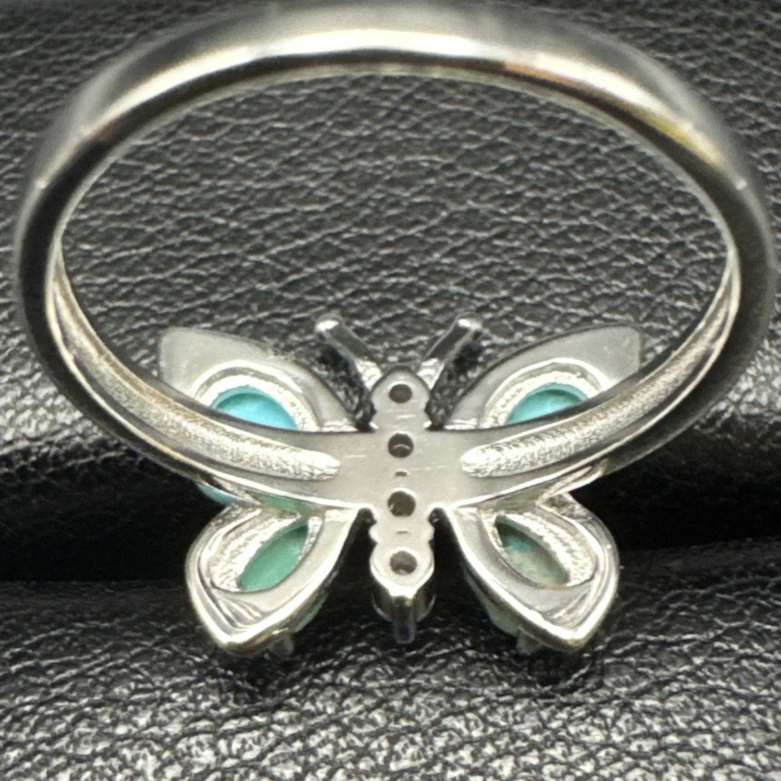 New Condition Sterling Silver Turquoise Butterfly Cz Ring Size 7