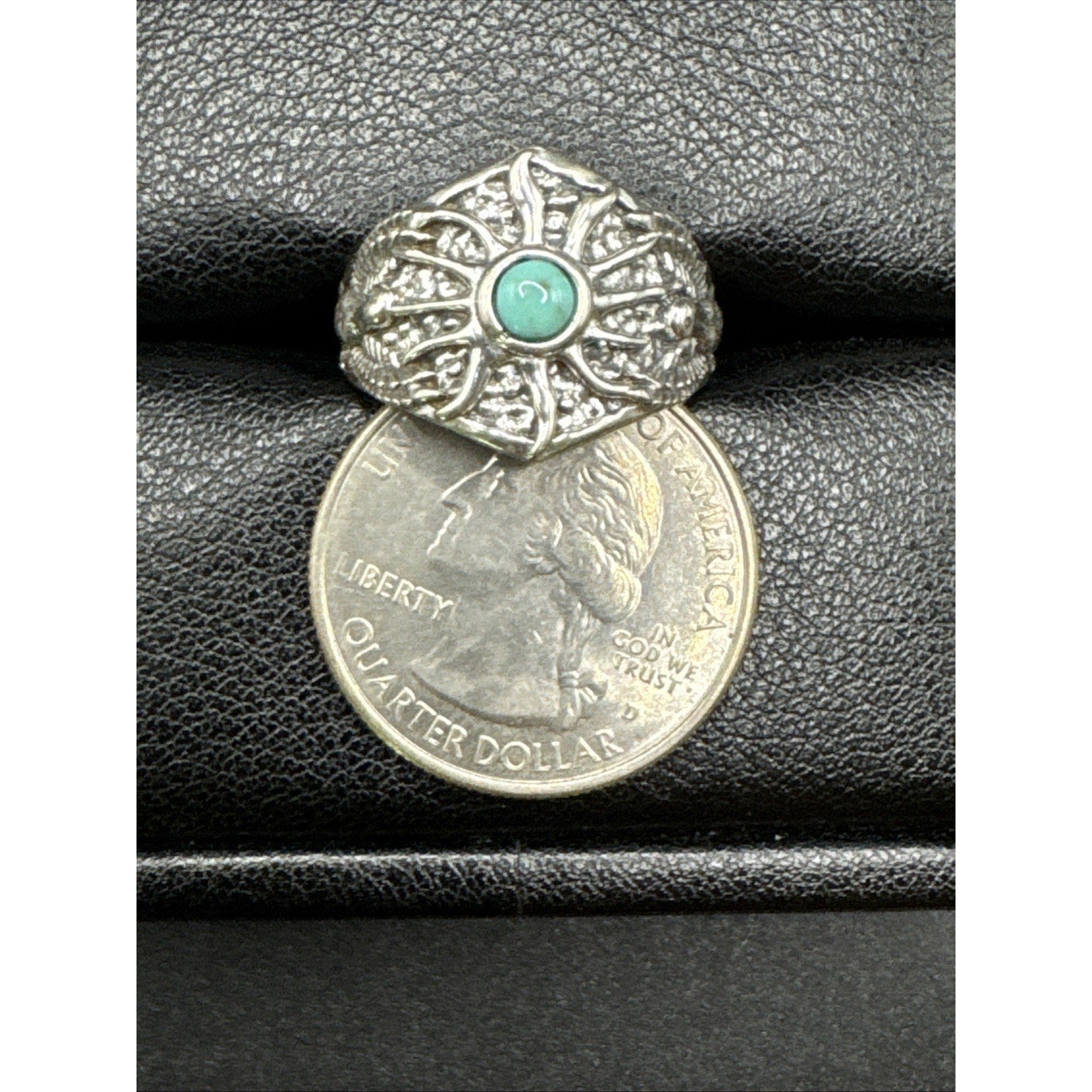 New Condition Sterling Silver Turquoise Phoenix Bird Sun Ring Size 7