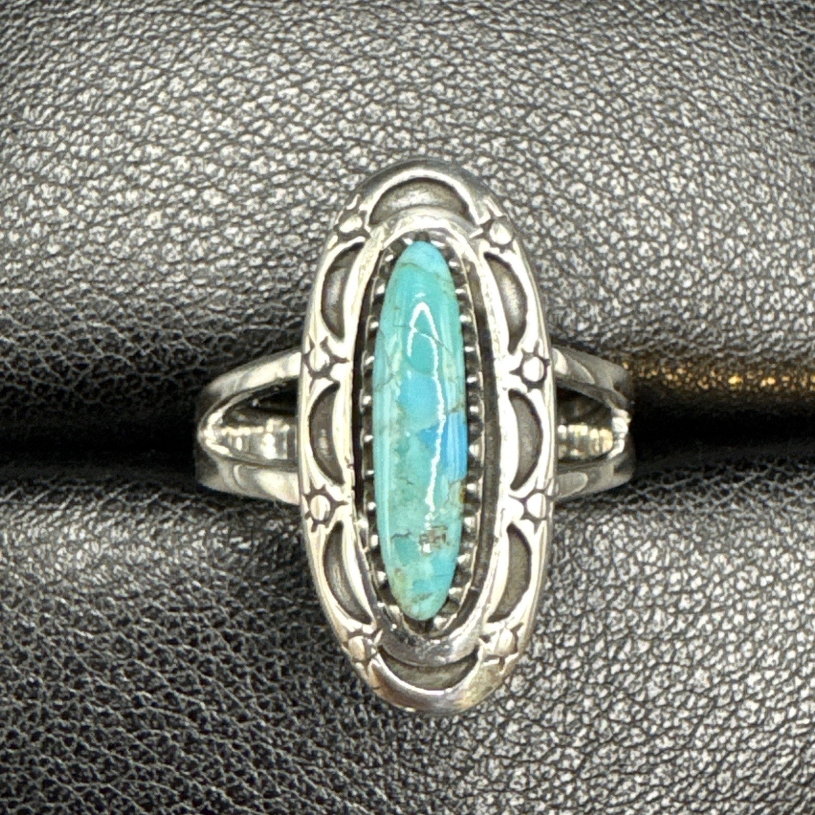 New Condition Sterling Silver Turquoise Ring 925 Size 9.75 Sun Moon Bezel