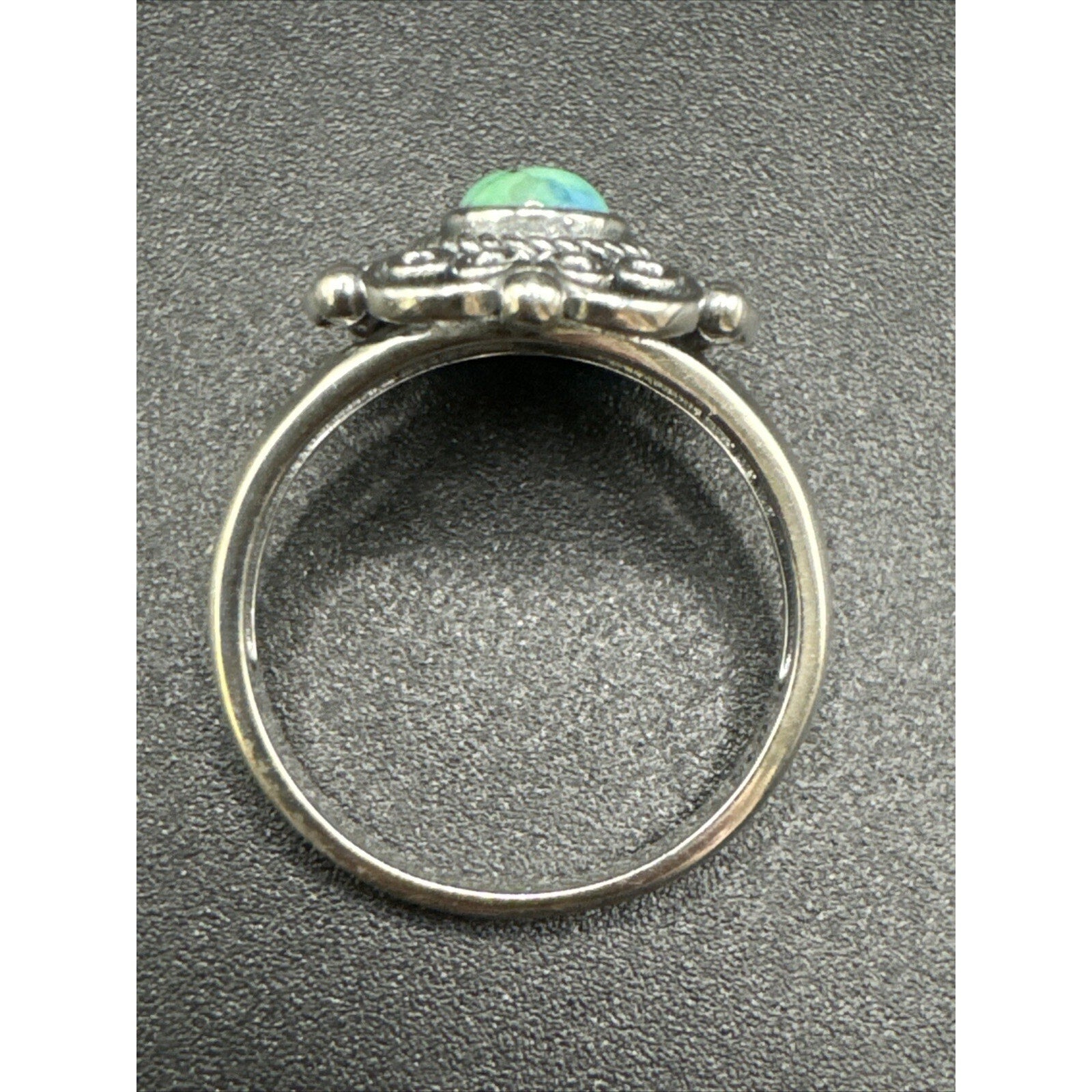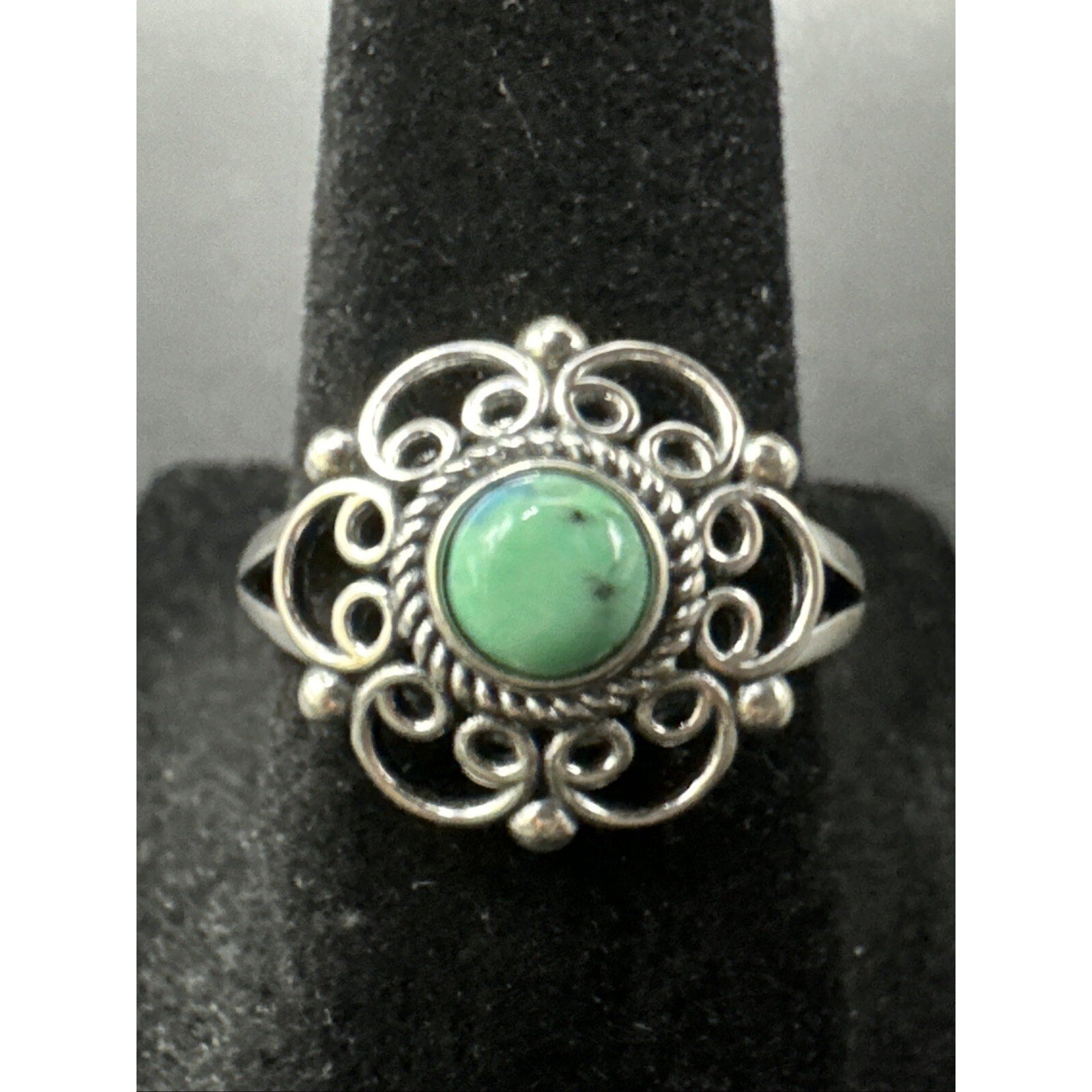 New Condition Sterling Silver Turquoise Stylized Scroll Flower Ring 925 Size 7