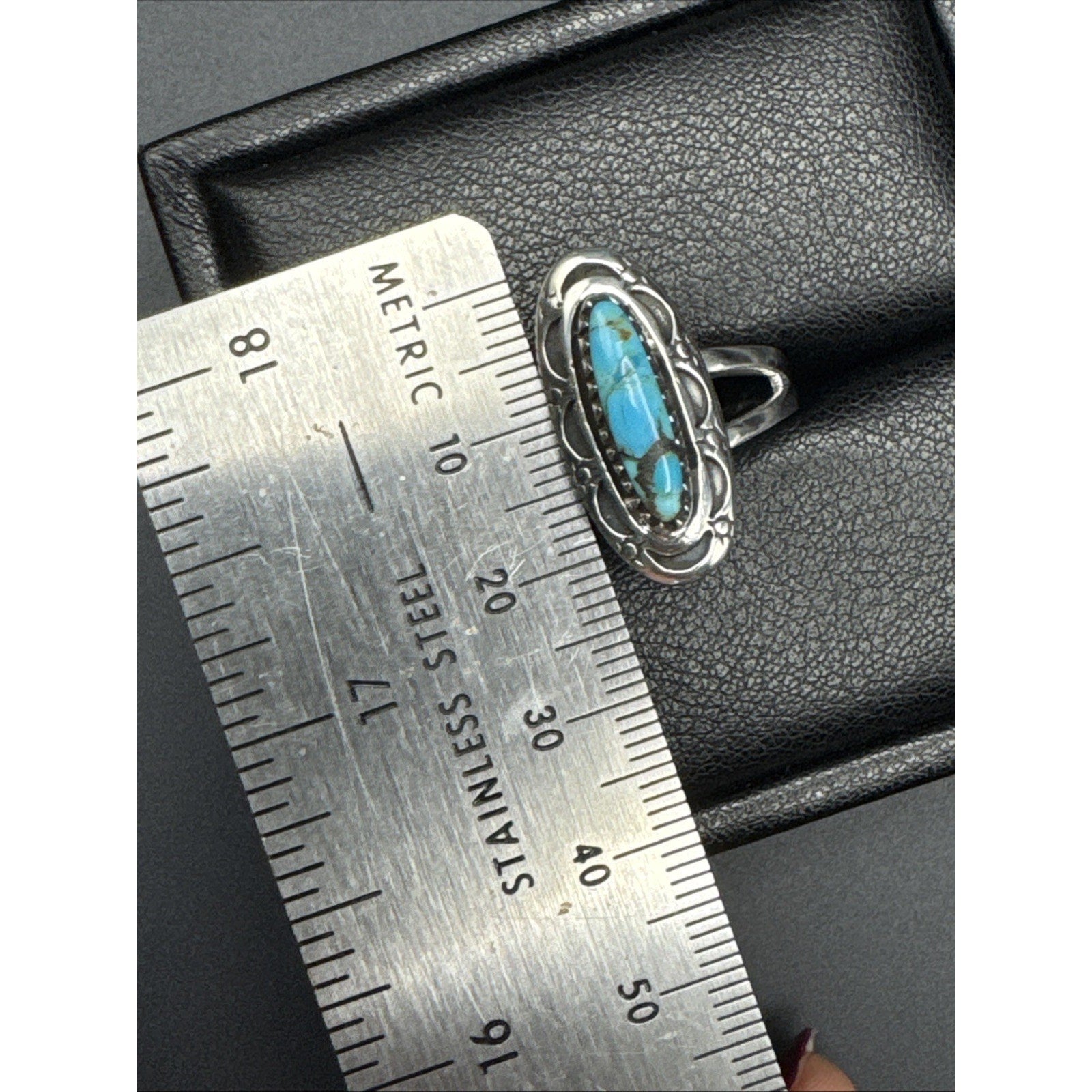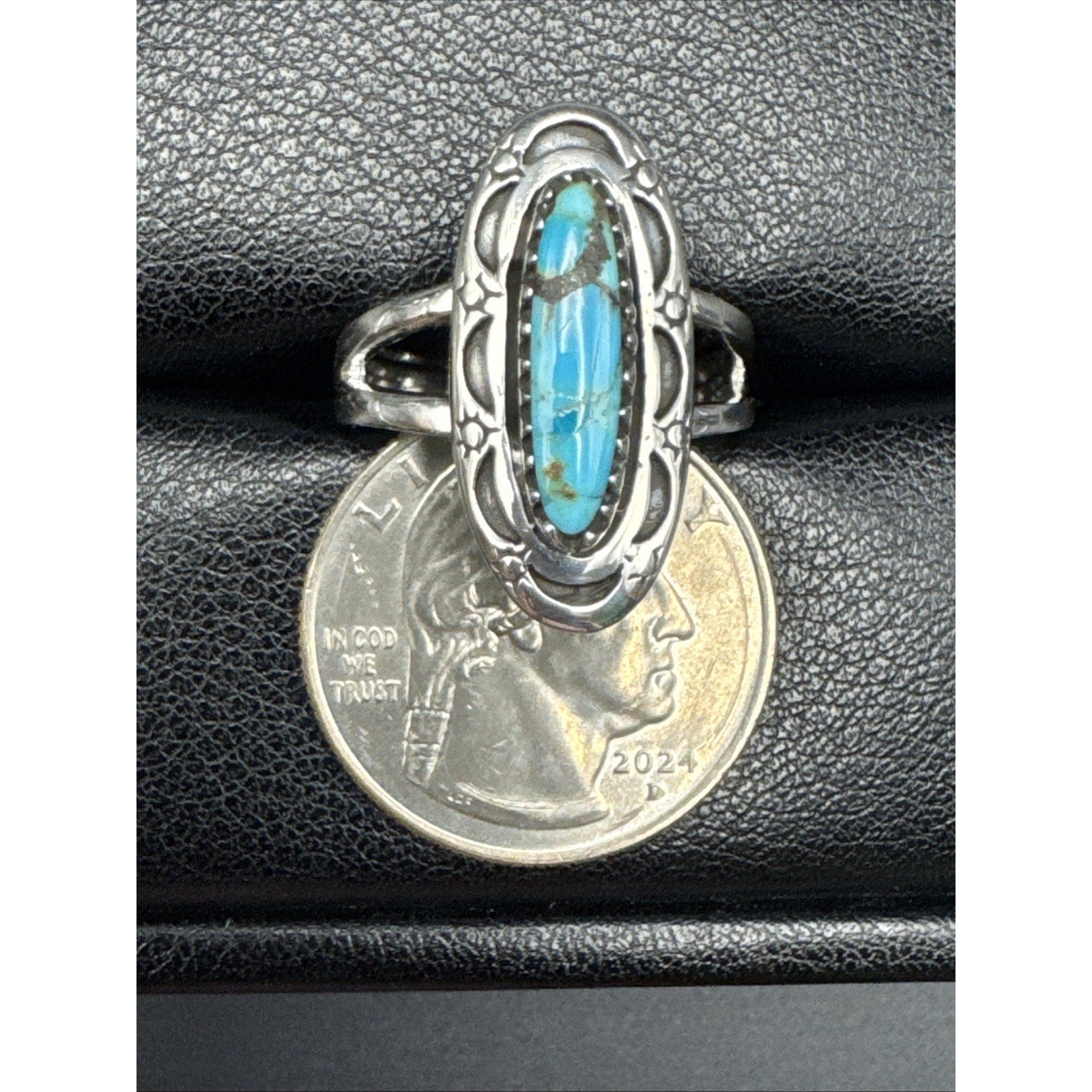 New Condition Sterling Silver Turquoise Sun Moon Bezel Ring 925 Size 9.75