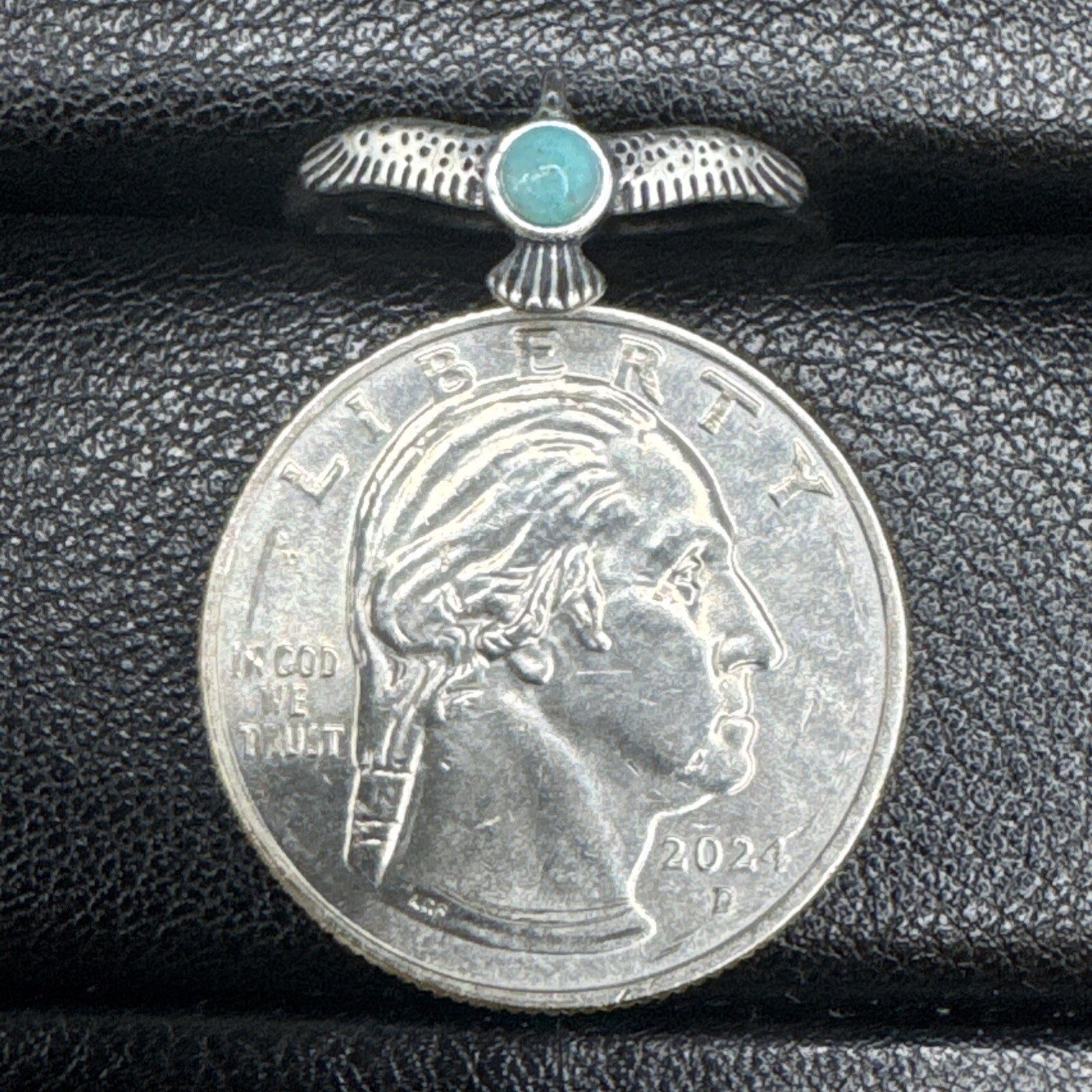 New Condition Sterling Silver Turquoise Thunderbird Ring 925 Size 8