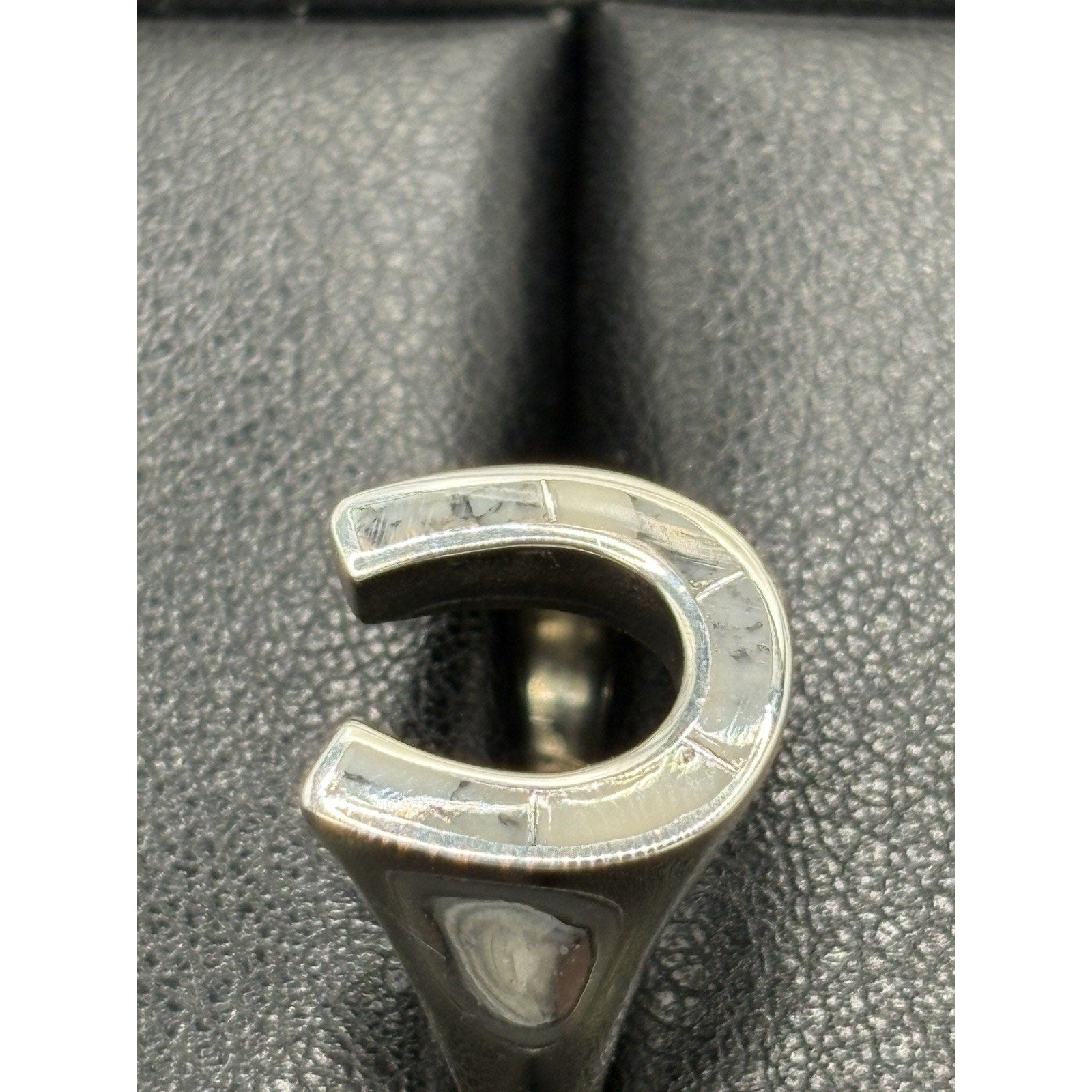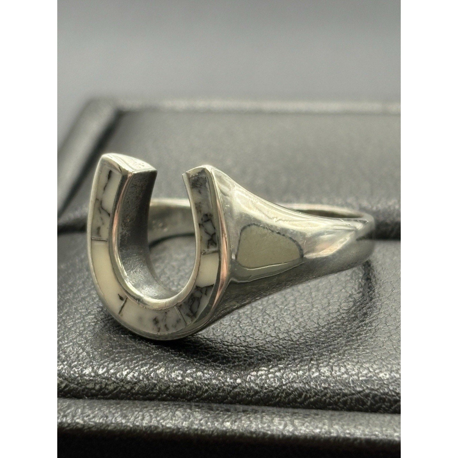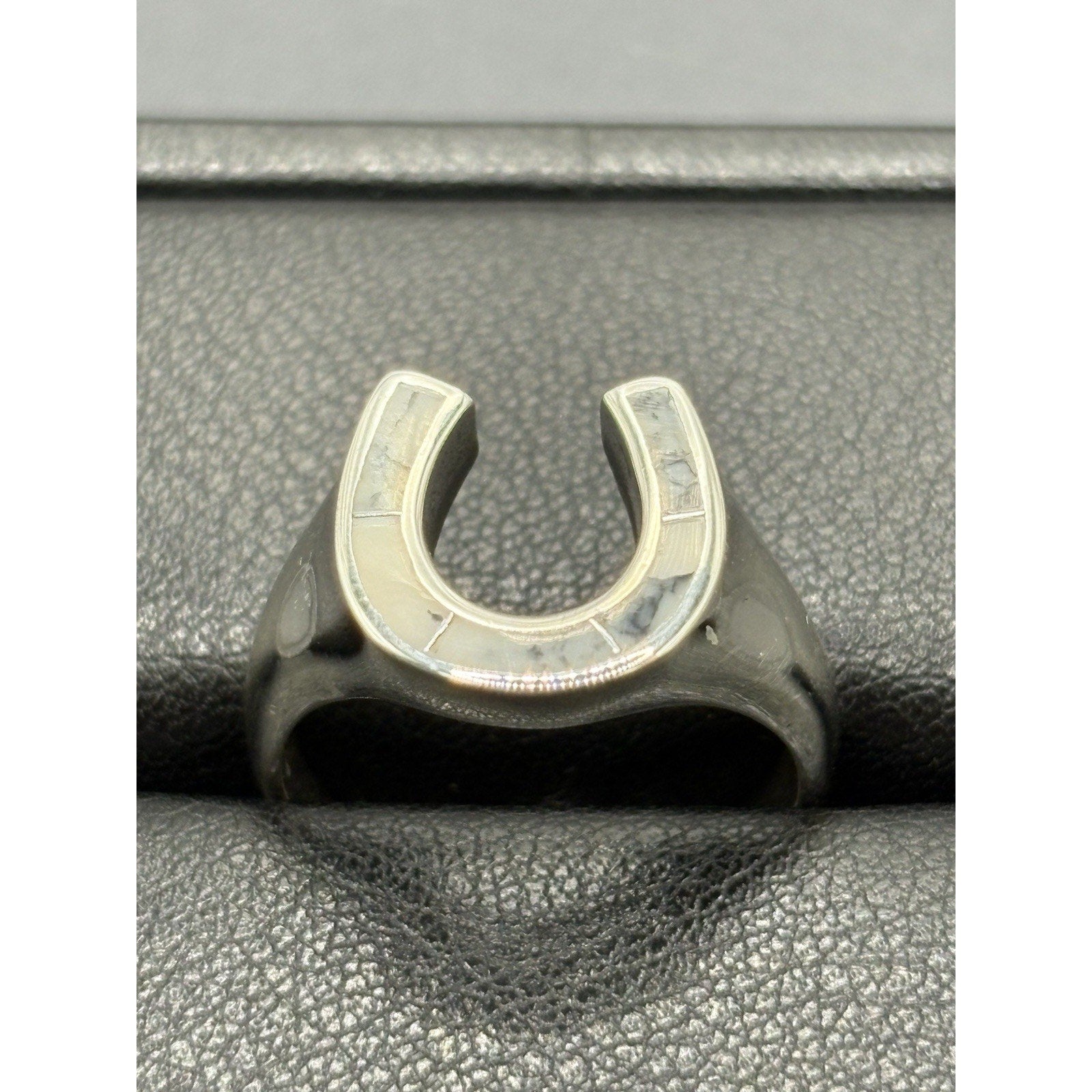 New Condition Sterling Silver White Jasper Horseshoe Ring Size 9