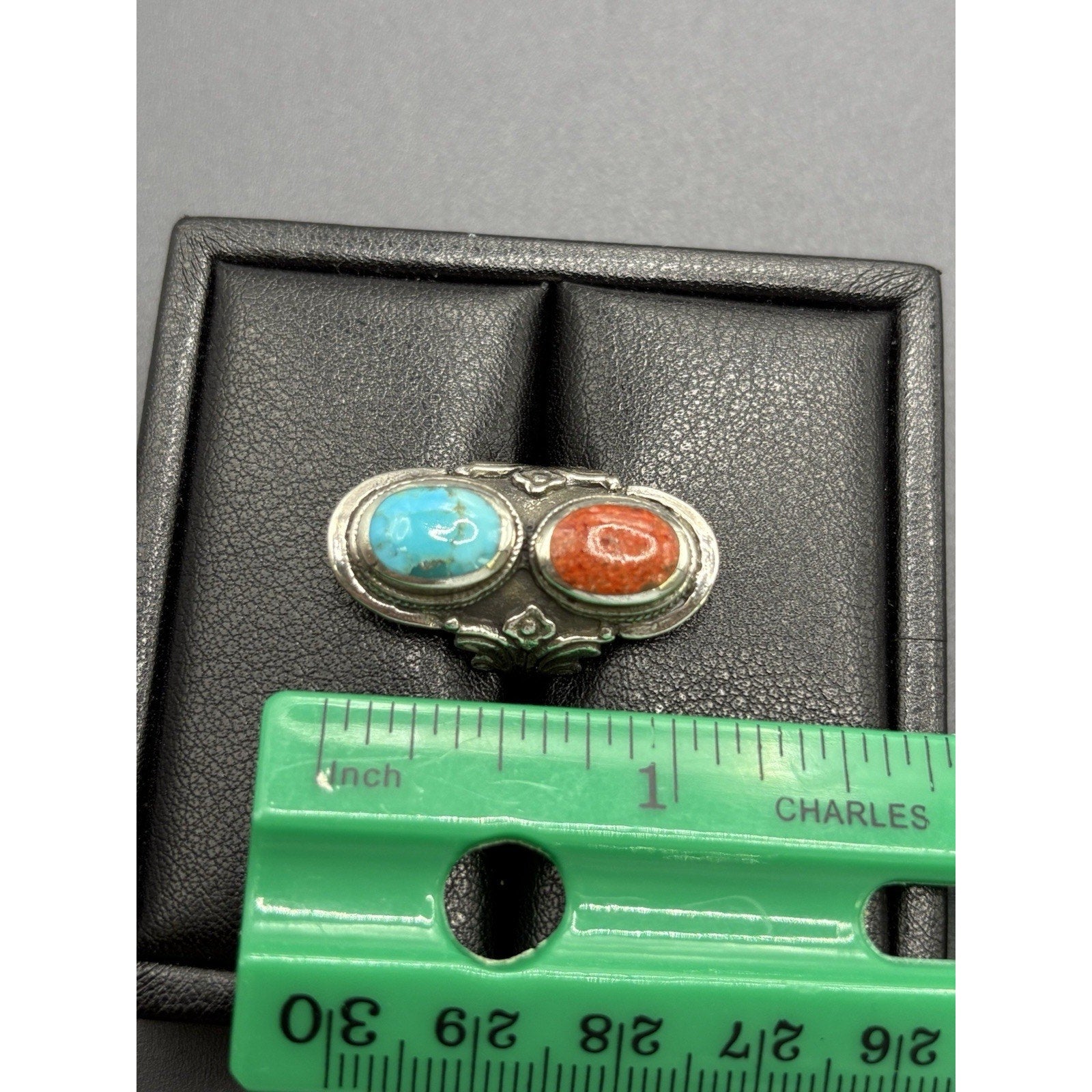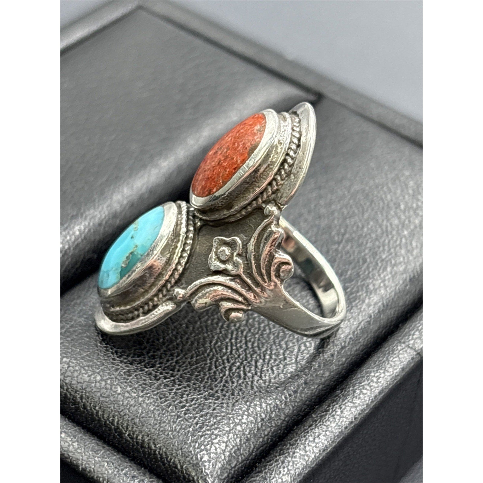 New Condition Turquoise Coral Long Ring 925 Size 5