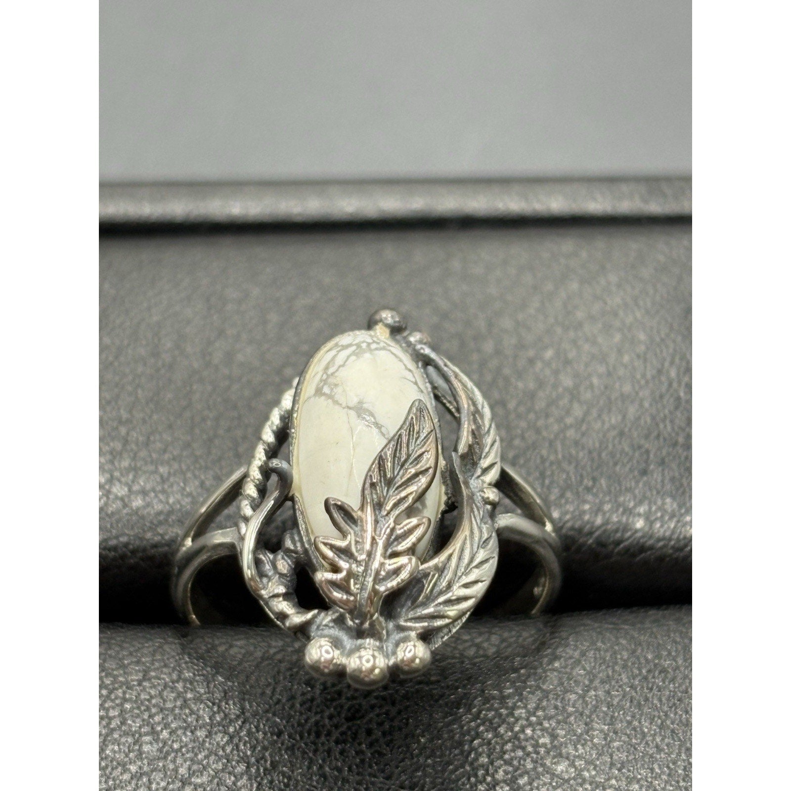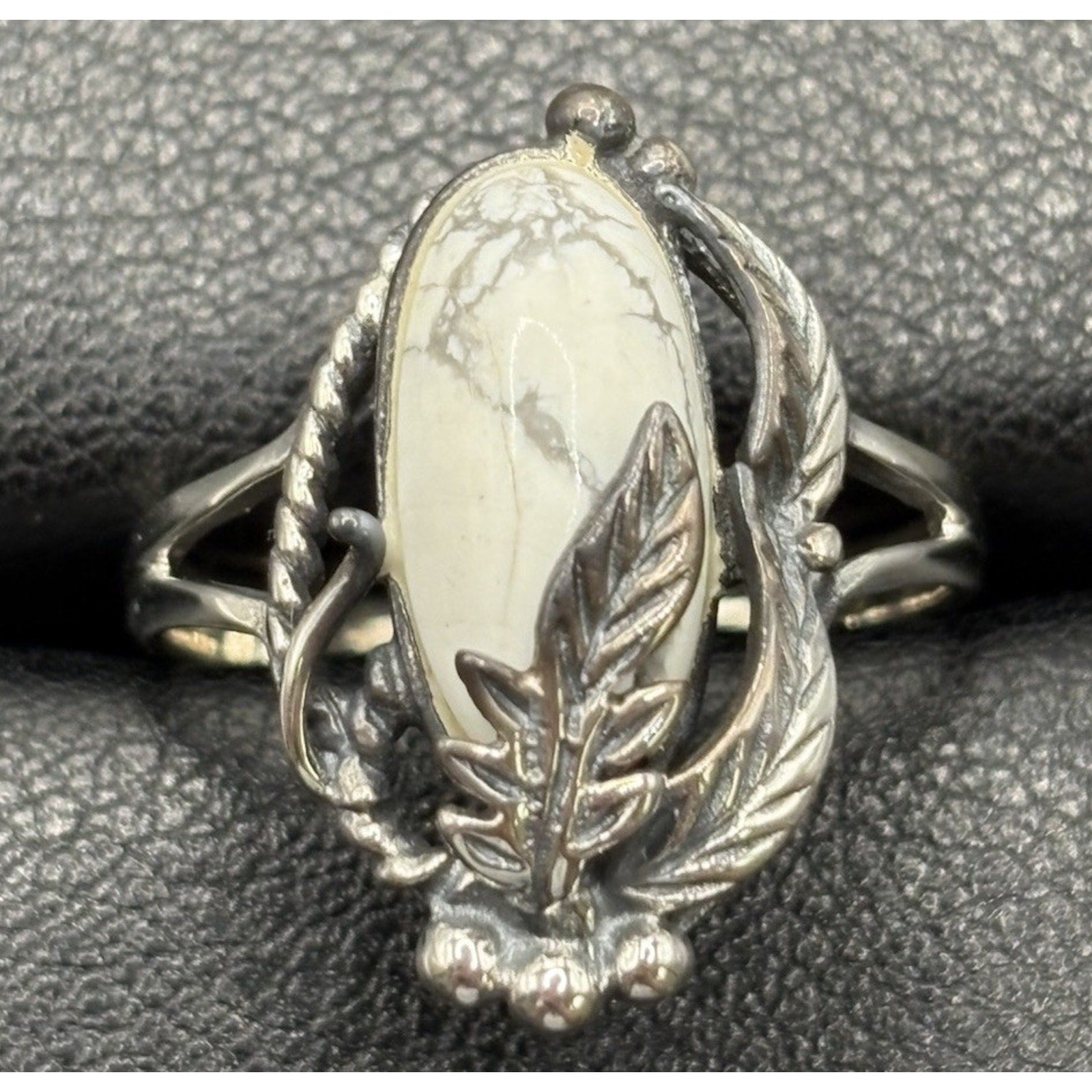 New Condition White Buffalo Sterling Silver Feather Ring Size 10