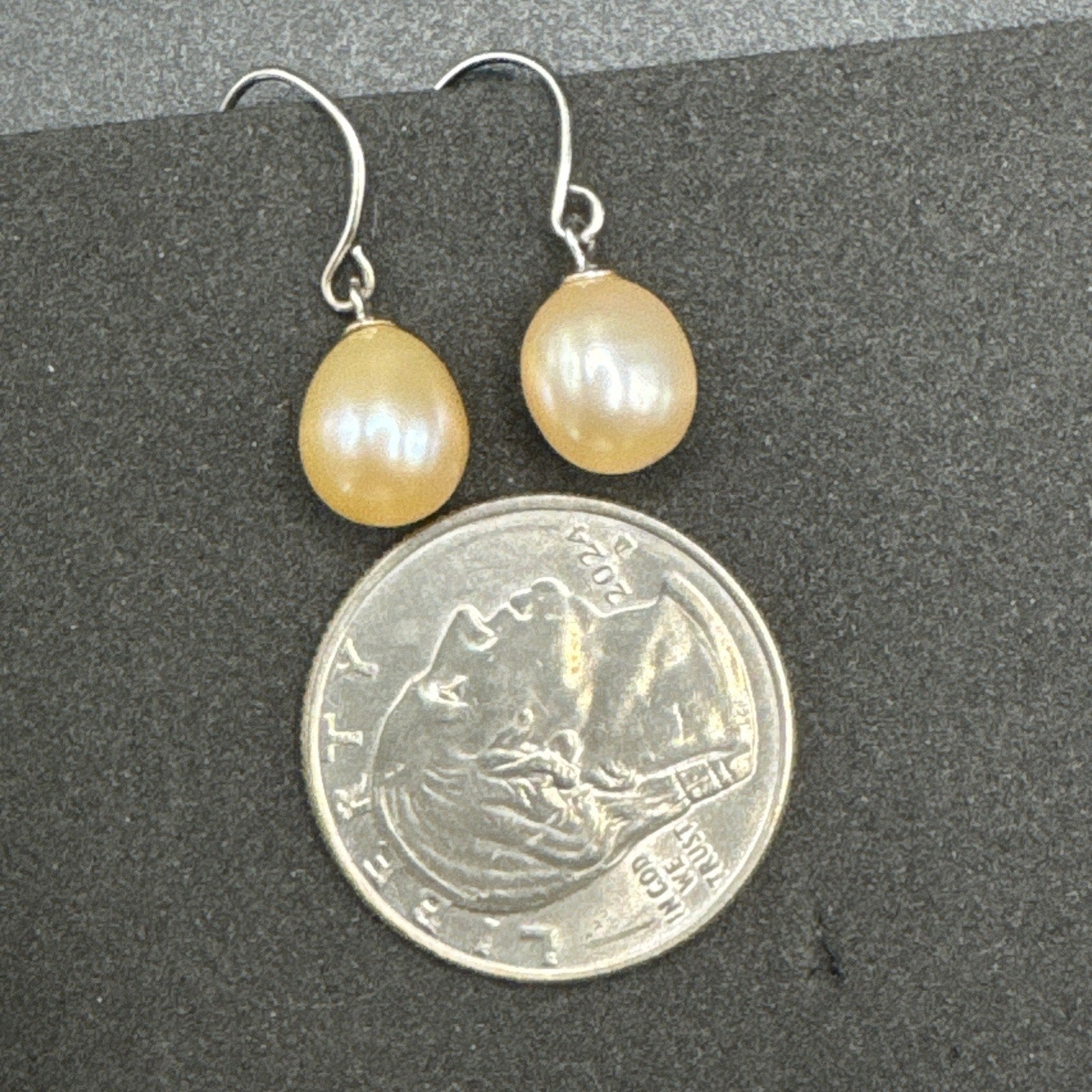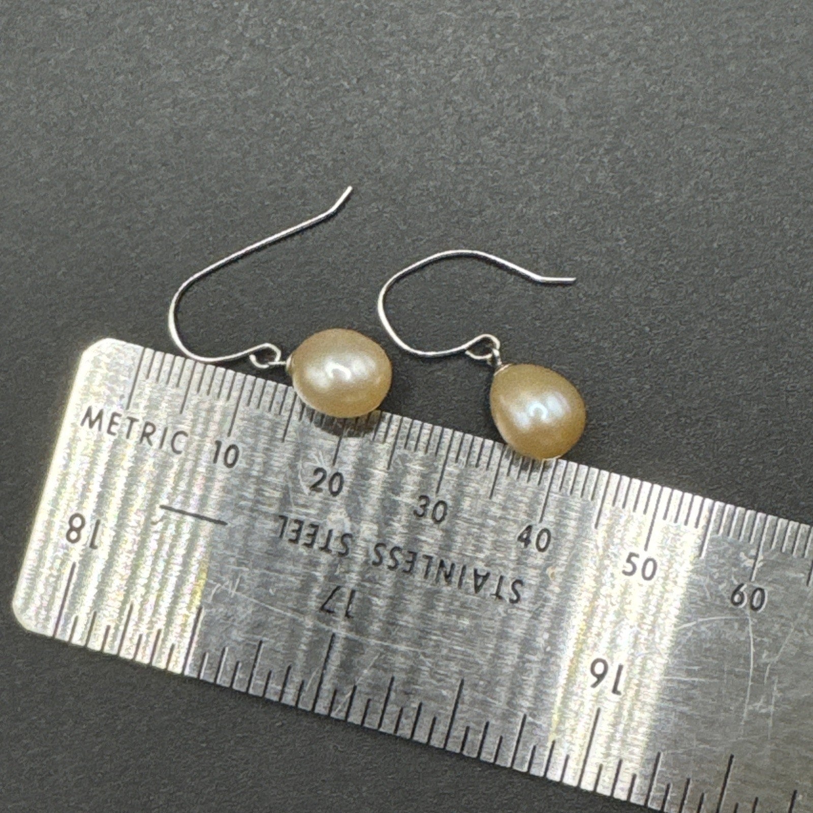 Sterling Silver Genuine Pearl Dangle Earrings 925 U1