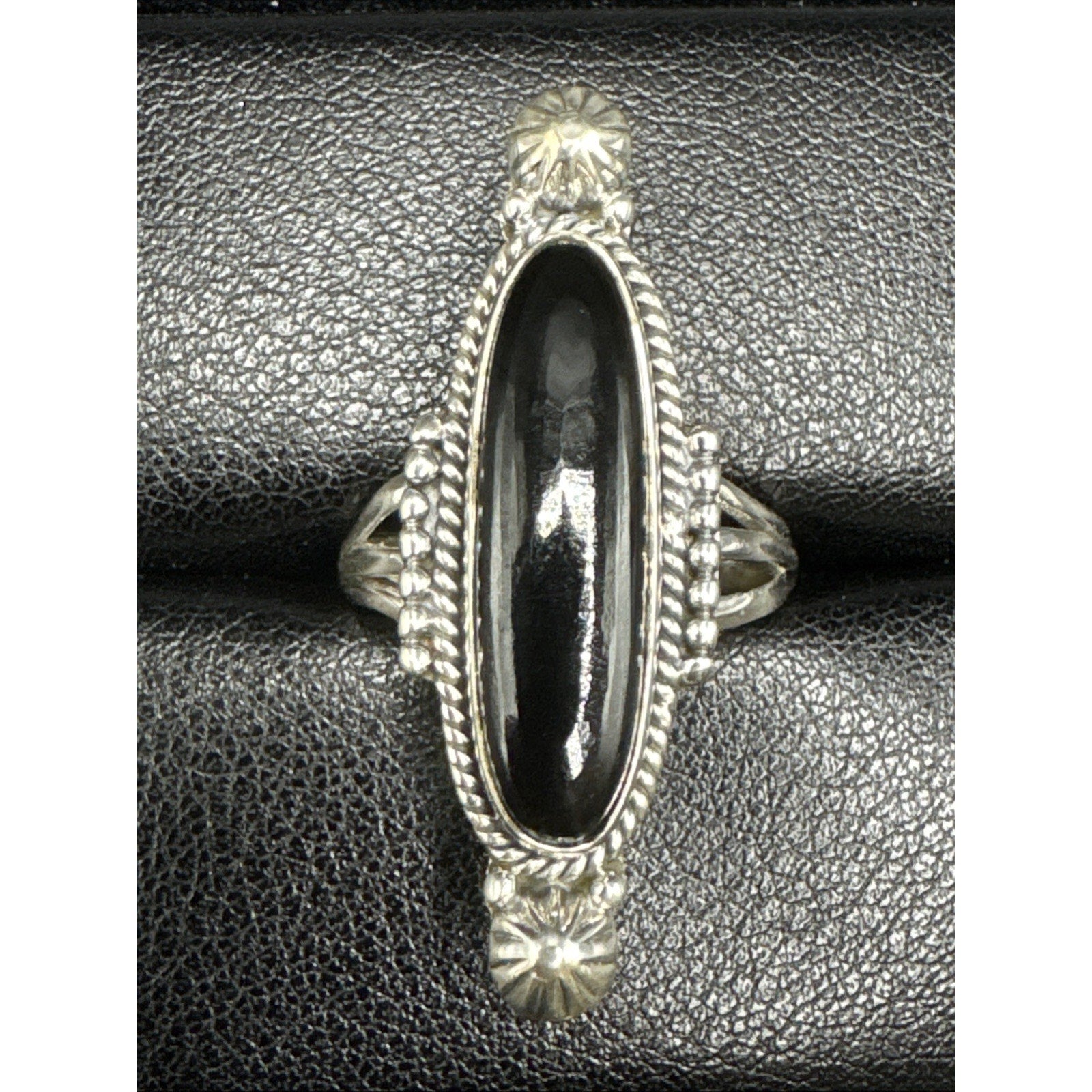 Sterling Silver Onyx Long Ring 925 Size 10.25 T29