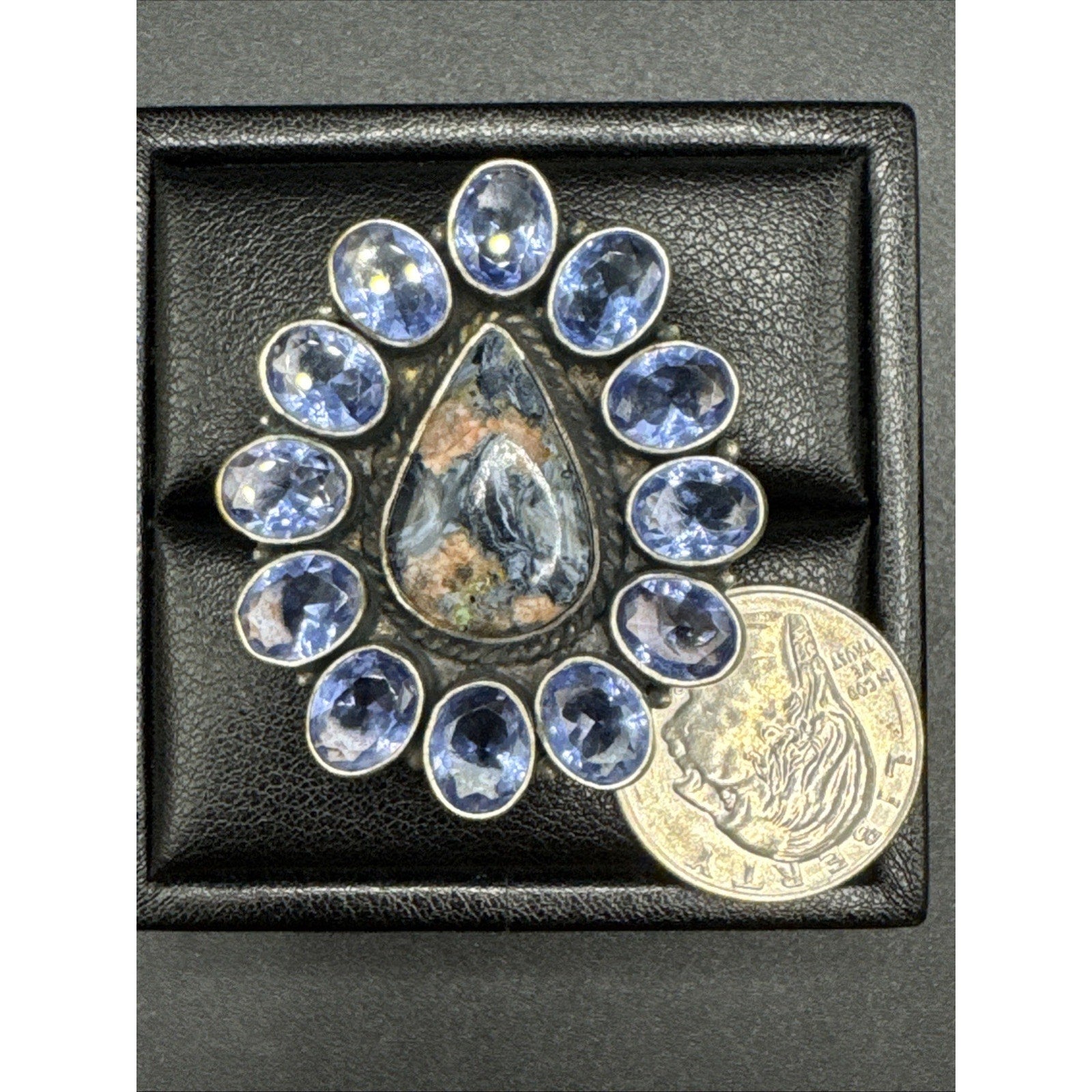 Sterling Silver Pietersite Tanzanite Statement Ring 23g 40x48mm 925 Size 7 T9
